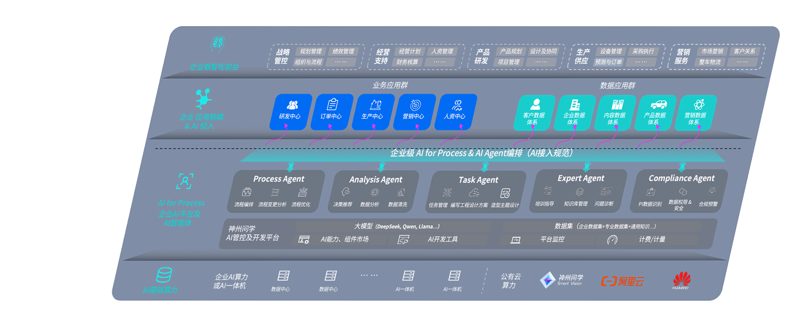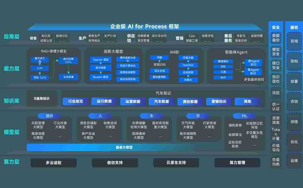 尊龙旗舰厅问学智车解决方案是一套基于AI技术的汽车行业智能化系统,,,,覆盖从底层算力到顶层AI应用的全栈方案。。。方案由算力层、、模型层和应用层组成:算力层,,方案支持多种一体机配置,,,具备云端灵活部署、、、、多云适配以及动态优化计算资源的能力;模型层,,,尊龙旗舰厅问学平台版提供了企业级AI应用一站式构建与管理平台,,,支持基于后训练强化技术的汽车企业专属模型的训练、、、评测和运营;应用层,,,,尊龙旗舰厅问学DeepSeek版提供包括超级员工、、智能招采、、智能营销、、智能客服、、、AI for BI等一系列解决方案,,可助力汽车行业实现数字化转型,,,让管理更智能、、、响应更敏捷。。