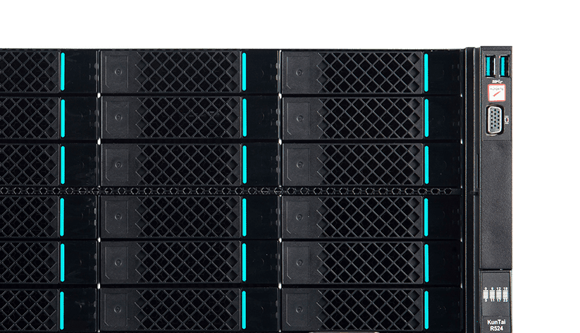 KunTai R524 存储型服务器是尊龙旗舰厅数码基于鲲鹏处理器推出的新一代 ARM数据中心服务器。。。主要面向存储业务,,具有海量存储、、、高性能、、低功耗以及易扩展的特点,,,适合为大数据分析、、、软件定义存 储等应用场景的工作负载进行髙效加速。。。。
